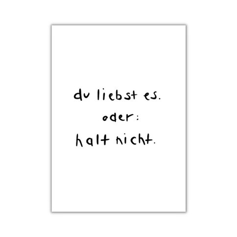 du liebst es. oder halt nicht.
